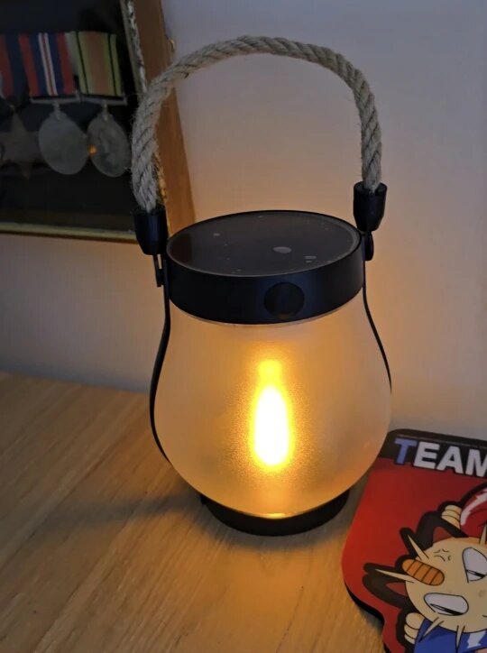 When fully charged, the lantern provides up to 8–10 hours of flickering flame light throughout the night.