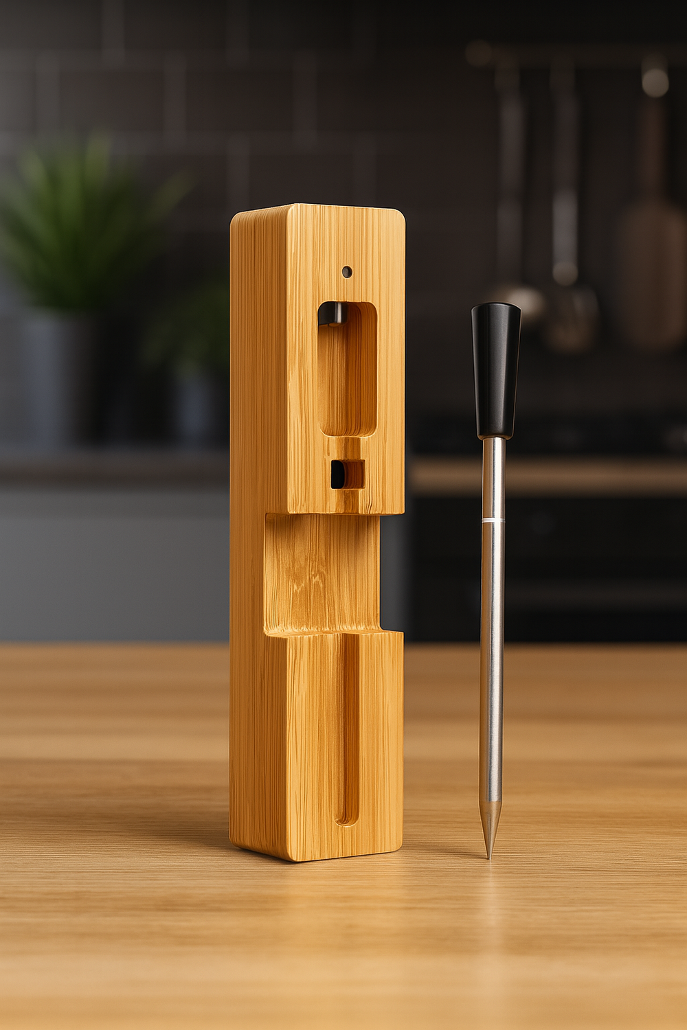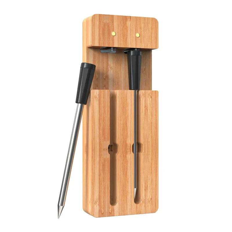 The smart probe holds a long-lasting charge, and the bamboo charging base keeps it powered and ready whenever you need it.